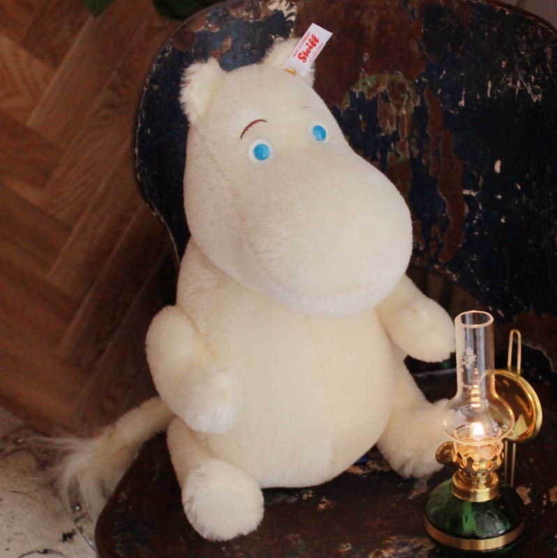 ムーミンをこよなく愛するシュタイフ社のデザイナーリヒターさんの情熱を注いで作られた作品は、キラキラとした特徴的な瞳からフサフサの尻尾まで、独特のオーラを放っています。