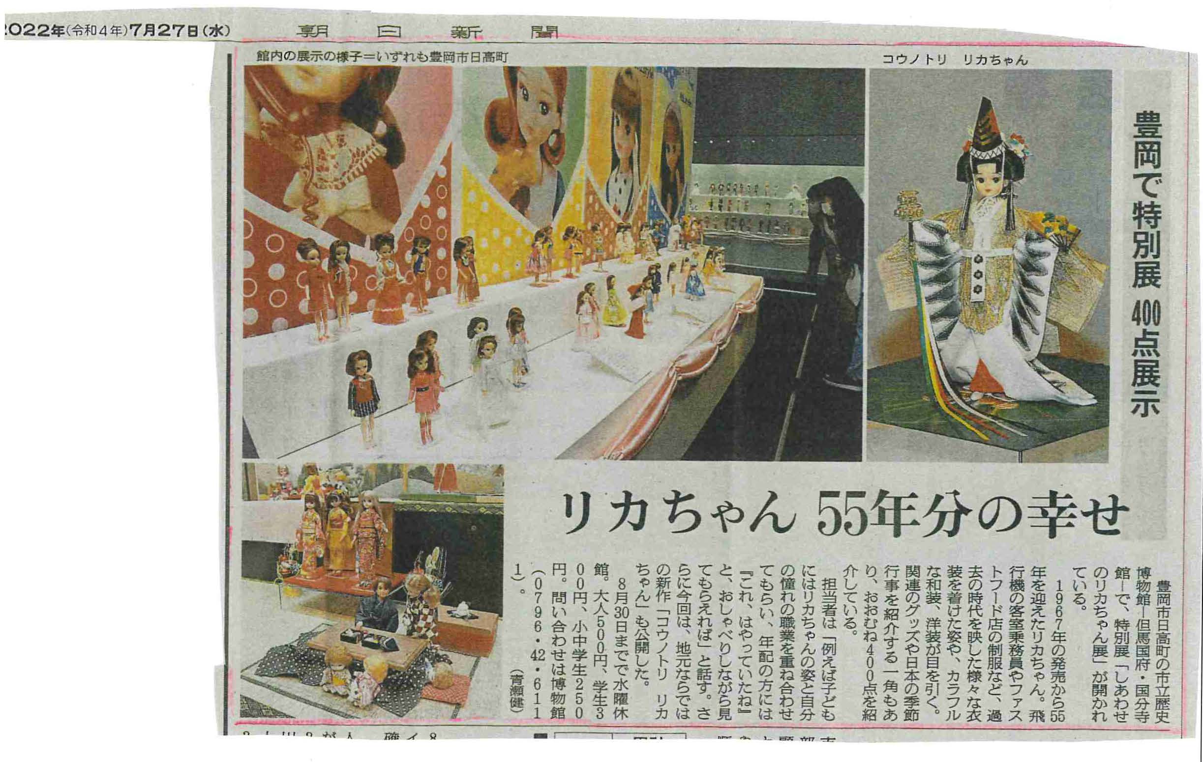 7/27朝日新聞には「リカちゃん55年分のしあわせ」と素敵な見出しでご紹介いただき、