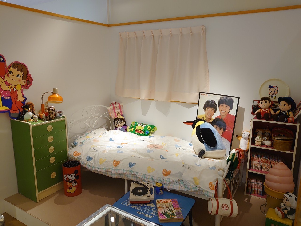 当時の子どもの部屋などが再現され、ガラスケースにはミニカーやお人形、ロボットから様々な昭和の生活娯楽の品々が並んでおります。