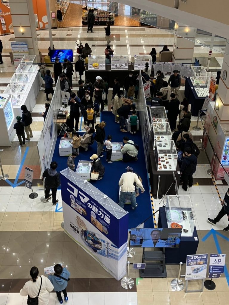 展示コーナーでは、コマの科学的な不思議を楽しく学べるだけでなく、