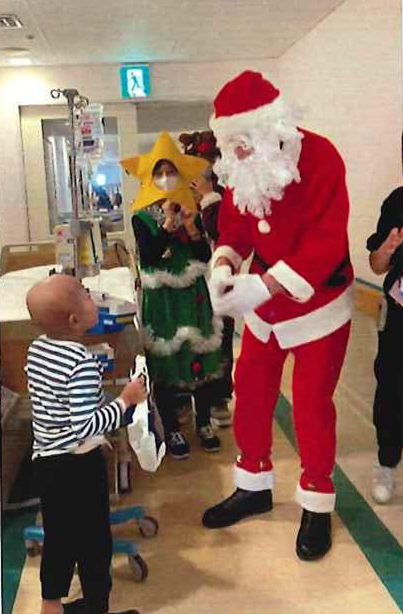 その一つが、クリスマスの時期に病院や施設で過ごさざるをえない子どもたちへ、おもちゃやプレゼントを届けるクリスマスサンタチャリティ活動への支援です。当初は訪問できる病院数も限られていましたが、ボランティアの方々やご協力いただける企業の支えもあり、現在では十数か所の病院や施設にプレゼント等をお贈りする活動へと発展しています。