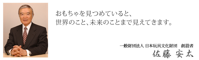 私たち一般財団法人日本玩具文化財団は、人類の未来を担う子どもたちのために、豊かな想像性と感受性を育てる「おもちゃ」のあり方について、 研究者、教育関係者、お父さん、お母さん方と一緒に考えていきたいと思います。